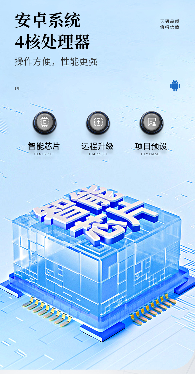 | 儀器采用臺式一體化系統(tǒng)檢測技術(shù),將分光光度模塊、新型農(nóng)殘檢測模塊、數(shù)字化管理模塊、無線通訊模塊高度集成于一體,支持檢測200種食品安全檢測項目,同時預(yù)留升級檢測方法。 | 儀器檢測模塊標準化、智能化,可隨意自由組合。檢測箱體內(nèi)置多個標準檢測單元,檢測模塊可以調(diào)整配置。 | 儀器采用全新安卓智能系統(tǒng),主控芯片采用 ARM Cortex-A7,RK3288/4核處理器,10.1寸高清液晶觸摸豎屏,更加**的UI交互界面,運轉(zhuǎn)快捷;儀器配備無線通信模塊: 4G(APN)通訊模塊、Wifi模塊,藍牙傳輸,同時具有雙USB接口以及RJ45接口能以多種方式實現(xiàn)數(shù)據(jù)保存和數(shù)據(jù)傳輸功能。 | 創(chuàng)新檢測模式: | ★檢測通道:≥12通道;采用精密旋轉(zhuǎn)比色池設(shè)計,使用同芯片同光源校準精度,解決不同光源之間的誤差值。1-12通道間誤差0.1%。(**號:ZL202022821055.2) | ★儀器具有自動識別比色皿檢測功能,即:將樣品比色皿放入儀器后,點擊樣品檢測,儀器自動識別比色皿進行通道檢測。 | 進口高精光源: | 高精度進口四波長冷光源,通道配置 410、520、590、630nm 波長光源,一個光源芯片驅(qū)動一個光源,誤差極小,每臺設(shè)備單獨**校準光源,**比對,同時參照四種不同波段光源全方位覆蓋市面上99%的農(nóng)殘食品項目檢測。 | 智能化操作系統(tǒng): | 便捷操作系統(tǒng):設(shè)備檢測時可在同一檢測界面自動對應(yīng)相關(guān)檢測通道一次性選擇1-12個樣品名稱,無須退出界面,節(jié)省操作時間。 | 數(shù)據(jù)集成系統(tǒng):設(shè)備首頁自動統(tǒng)計檢測數(shù)據(jù)包含:周檢測數(shù)據(jù)、月檢測數(shù)據(jù),全部檢測總數(shù)量,均包含檢測總數(shù),合格數(shù),不合格數(shù),以及相關(guān)柱形分析圖,對各項檢測數(shù)據(jù)清晰掌握,無需電腦查詢,更加快捷直觀。 | 項目預(yù)設(shè)系統(tǒng):支持添加單個及多個相同或不相同的任務(wù)預(yù)設(shè),一鍵快速調(diào)取,每一個任務(wù)分別可以設(shè)置不同的樣品、批次、編號、來源、備注、抽樣信息、檢測信息、受檢信息、復核信息等更多信息。無縫鏈接平臺和APP實時查看下發(fā)任務(wù)。 | 數(shù)據(jù)監(jiān)管系統(tǒng):同步對接監(jiān)管平臺,數(shù)據(jù)可局域網(wǎng)和互聯(lián)網(wǎng)數(shù)據(jù)上傳,檢測結(jié)果可選擇直接傳至食品安全監(jiān)管平臺。集成OSS輸出存儲服務(wù)、區(qū)分設(shè)備定向管理應(yīng)用,進行區(qū)域食品安全監(jiān)管及大數(shù)據(jù)分析處理與數(shù)據(jù)統(tǒng)計,檢測區(qū)域食品安全長短期動態(tài),達到食品安全問題預(yù)估、預(yù)警。 | 自定義打印系統(tǒng):內(nèi)置全新打印系統(tǒng),新創(chuàng)自定義打印方式,可按需靈活設(shè)置開啟或關(guān)閉:產(chǎn)品合格證(國家農(nóng)業(yè)部標準要求),二維碼,抽樣信息、檢測信息,受檢信息、復核信息、抽樣日期、檢測日期等信息的打印。 | 系統(tǒng)遠程更新功能:可定向分客戶分儀器更新系統(tǒng),按照不同客戶后期實際需求添加項目,無需機器返廠,即可遠程實時升級全新系統(tǒng),節(jié)省時間成本及避免運輸造成設(shè)備損壞。 | 儀器主機采用一體化防水、抗壓、防撞擊、防腐蝕箱體設(shè)計,同時配備交直流供電,可連接車載電源,可選配大容量充電鋰電池,滿足現(xiàn)場野外檢測需求。 | 安全證書,放心保障:儀器具有中國計量科學研究院校準證書,**認證。 |