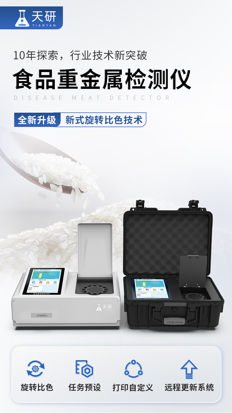 山東天研儀器有限公司生產(chǎn)的食品重金屬檢測儀為集成化食品安全快速檢測分析設(shè)備,采用手提箱一體化設(shè)計,重金屬檢測儀可廣泛應(yīng)用于大米、糧谷、果品、蔬菜、藥材、水產(chǎn)品中重金屬鉛、鎘、六價鉻、汞、砷、鐵、鎳、鋁的快速檢測,檢測項目可根據(jù)日后需求可進(jìn)行遠(yuǎn)程升級。