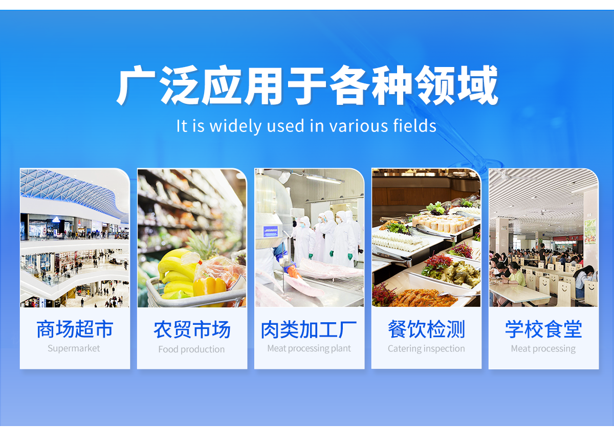 該肉類綜合檢測儀為集成化肉品安全快速檢測分析設(shè)備,廣泛應(yīng)用于養(yǎng)殖場、屠宰場、食品肉產(chǎn)品深加工企業(yè)、檢驗檢疫部門、食藥監(jiān)局、衛(wèi)生部門、高教院校、科研院所、農(nóng)業(yè)部門等單位使用。