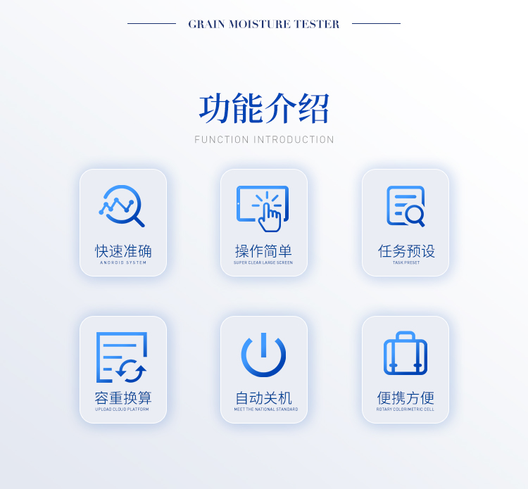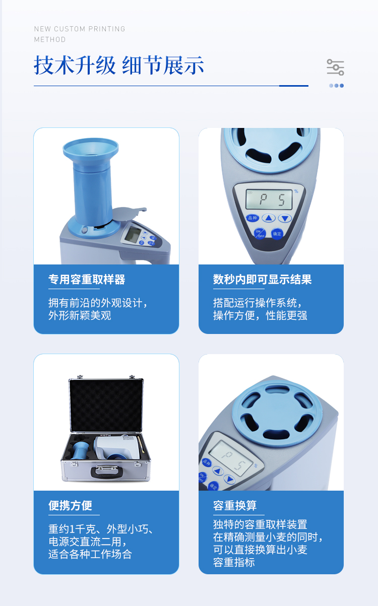 容重換算:獨特的**容重取樣裝置在**測量小麥的同時,可以直接換算出小麥容重指標。