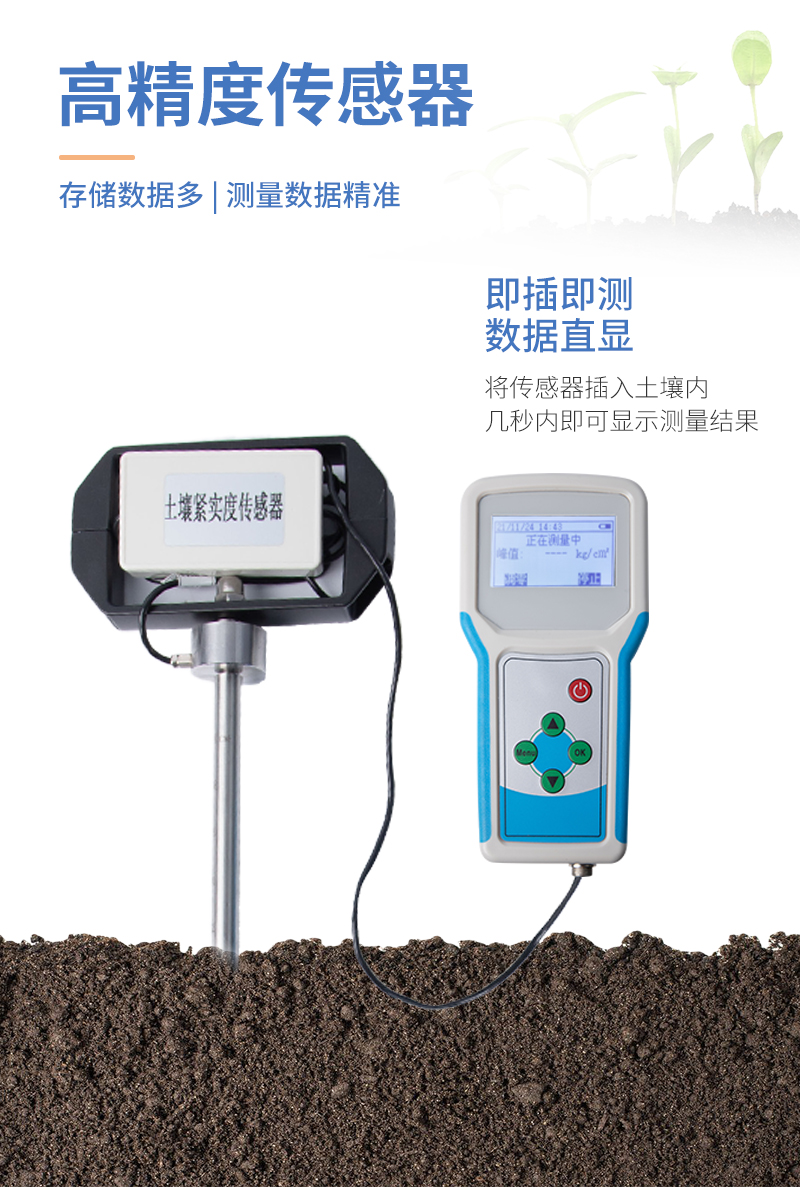 土壤緊實(shí)度由土壤抗剪力、壓縮力和摩擦力等構(gòu)成。是土壤強(qiáng)度的一個(gè)合成指標(biāo)。金屬柱塞或探針壓入土壤時(shí)分動(dòng)載和靜載兩種方法,不同方法的測(cè)定值不同,但有聯(lián)系。柱塞的形狀有錐體、平頭、圓球及楔子等,這些對(duì)測(cè)定值也有影響。對(duì)同一種方法的測(cè)定值,主要決定于土壤質(zhì)地、容重和含水量。其中含水量的影響最大。土壤緊實(shí)度可預(yù)測(cè)土壤承載量、耕性和根系伸展的阻力。土壤緊實(shí)度的大小可影響作物根系的穿孔和生長(zhǎng),是一個(gè)重要的土壤物理特性指標(biāo),用于評(píng)價(jià)土壤耕性。緊實(shí)的土壤可阻止水分的入滲,降低化肥的利用率,影響植物根系生長(zhǎng),導(dǎo)致作物減產(chǎn)。
