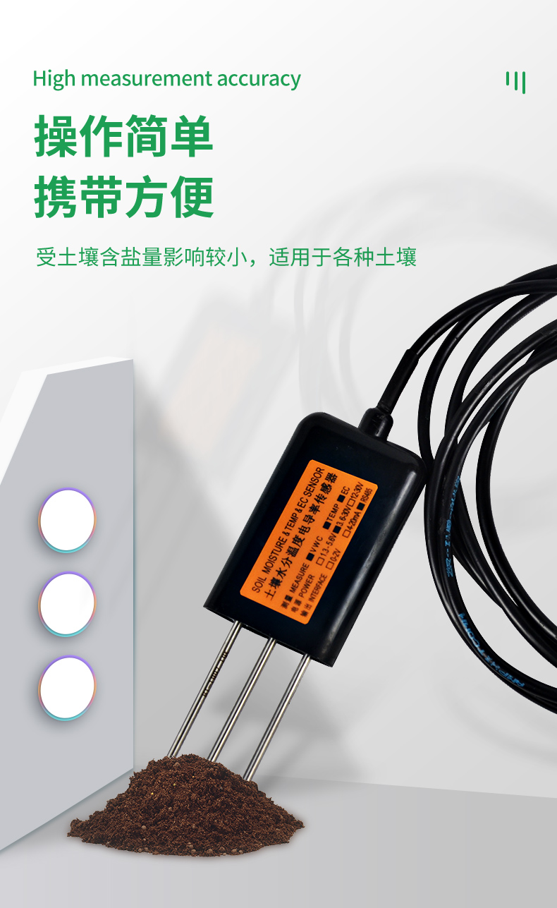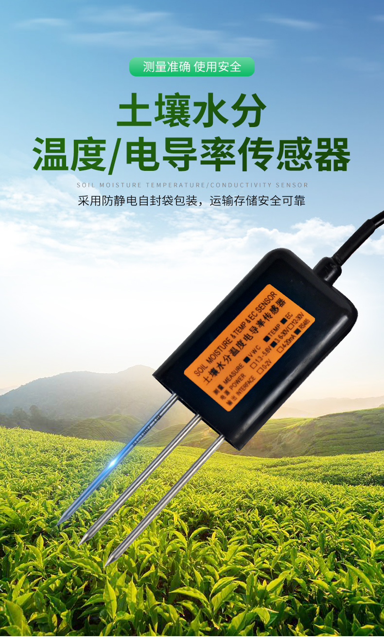 MEC10土壤水分/電導率/溫度傳感器性能穩(wěn)定靈敏度高,是觀測和研究鹽漬土的發(fā)生、演變、改良以及水鹽動態(tài)的重要工具。通過測量土壤的介電常數,能直接穩(wěn)定地反映各種土壤的真實水分含量。MEC10土壤水分傳感器可測量土壤水分的體積百分比,是符合目前**標準的土壤水分測量方法。適用于土壤墑情監(jiān)測、科學試驗、節(jié)水灌溉、溫室大棚、花卉蔬菜、草地牧場、土壤速測、植物培養(yǎng)、污水處理、精細農業(yè)等場合。