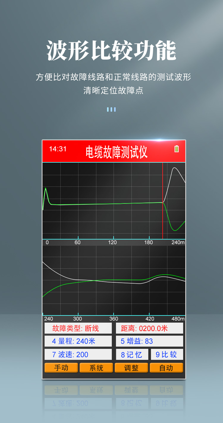 產(chǎn)品概述: TL280電纜故障礙智能測距儀(以下簡稱TL280)適用于自動(dòng)測量電力電纜、通信電纜的斷線、混線、地氣等芯線障礙的**位置。 TL280的最大特色在于可自動(dòng)測試許多典型故障,具體特色如下:: 1)DAGC(數(shù)碼增益自動(dòng)控制)系統(tǒng):可數(shù)