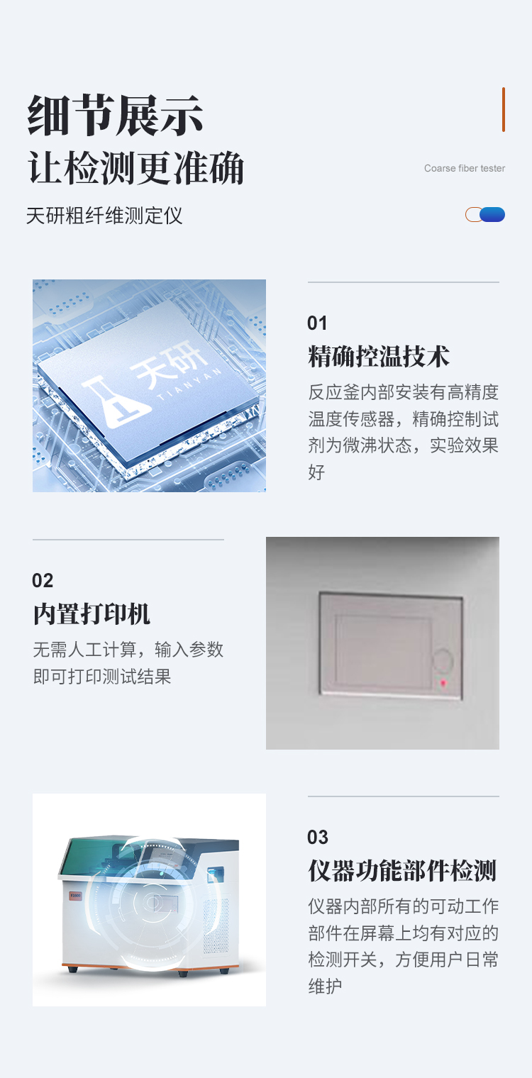 產(chǎn)品介紹: F系列粗纖維測(cè)定儀是采用三維濾袋方法,結(jié)合無(wú)冷卻水、高壓密封技術(shù)和現(xiàn)代電子技術(shù)研發(fā)的高通量、**率操作便捷的全自動(dòng)粗纖維測(cè)定儀。半自動(dòng)粗纖維測(cè)定儀是遵循國(guó)標(biāo)規(guī)定的消煮法,利用化學(xué)溶劑提取纖維含量,很好的解決了坩鍋抽濾、轉(zhuǎn)移法所造成的費(fèi)工費(fèi)時(shí)、火力控制不當(dāng)、殘?jiān)讚p失等問(wèn)題,