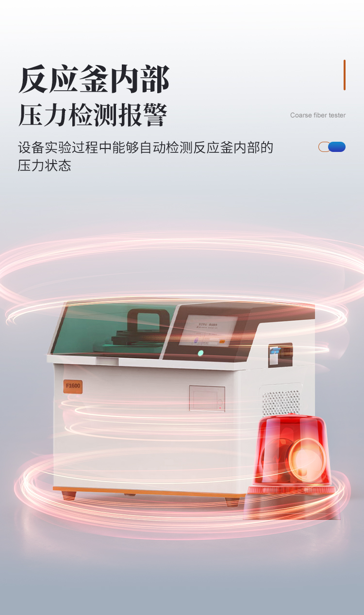 | 1、濾袋式纖維測(cè)定儀是遵循**和國(guó)標(biāo)規(guī)定的消煮法,利用化學(xué)溶劑提取纖維含量,很好的解決了坩鍋抽濾、轉(zhuǎn)移法所造成的費(fèi)工費(fèi)時(shí)、火力控制不當(dāng)、殘?jiān)讚p失等問(wèn)題,全自動(dòng)進(jìn)行溶劑加注、恒溫加熱、消煮、震蕩、廢液排出等操作。適用于測(cè)定粗纖維CF、酸性洗滌纖維ADF、中性洗滌纖維NDF、酸性洗滌木質(zhì)素等的測(cè)定。 | 2、運(yùn)用技術(shù):濾袋技術(shù),適用于CF、NDF、ADF方法的纖維分析。 | 3、大屏幕人機(jī)交互界面,16位真彩色液晶觸摸屏,操作界面簡(jiǎn)單易用,便于用戶的學(xué)習(xí)和使用。 | 4、內(nèi)置可設(shè)置的實(shí)驗(yàn)方案,共可以設(shè)置50種不同的實(shí)驗(yàn)方案。 | 5、內(nèi)置用戶登錄功能,共有5個(gè)用戶賬戶。 | 6、內(nèi)置用戶賬戶權(quán)限設(shè)置,每個(gè)登錄賬戶均可設(shè)置自己的操作權(quán)限,不同等級(jí)的操作權(quán)限對(duì)機(jī)器能進(jìn)行操作的功能不一樣。 | 7、指紋登錄功能,無(wú)需輸入用戶名和密碼,使用錄入的指紋信息即可登錄,更加方便快捷。 | 8、內(nèi)置儀器功能部件檢測(cè)功能,儀器內(nèi)部所有的可動(dòng)工作部件在屏幕上均有對(duì)應(yīng)的檢測(cè)開(kāi)關(guān),方便用戶日常維護(hù)。 | 9、特殊處理反應(yīng)釜,反應(yīng)釜體采用特殊材質(zhì),耐高溫、高壓和化學(xué)腐蝕,使用壽命長(zhǎng)。 | 10、反應(yīng)釜防干燒功能,內(nèi)置軟件和硬件雙重防干燒保險(xiǎn),防止釜體干燒。 | 11、反應(yīng)釜密閉性自檢技術(shù),反應(yīng)釜能夠在實(shí)驗(yàn)過(guò)程中進(jìn)行密閉性自檢,防止反應(yīng)釜蓋不緊。 | 12、放泡沫結(jié)構(gòu)設(shè)計(jì),獨(dú)特的消煮結(jié)構(gòu)能夠有效防止試劑加熱時(shí)產(chǎn)生的泡沫,且無(wú)需添加正辛醇等消泡劑,節(jié)省試劑且更環(huán)保無(wú)異味。 | 13、采用大功率加熱鋁塊,提高加熱效率。 | 14、密閉消煮技術(shù),實(shí)驗(yàn)過(guò)程中產(chǎn)生的蒸汽不會(huì)擴(kuò)散到設(shè)備以外,實(shí)現(xiàn)了不需要冷卻水進(jìn)行冷卻的微沸消煮功能,設(shè)備使用更加方便。 | 15、**控溫技術(shù),反應(yīng)釜內(nèi)部安裝有高精度溫度傳感器,**控制試劑為微沸狀態(tài),實(shí)驗(yàn)效果好。 | 16、反應(yīng)釜內(nèi)部壓力檢測(cè)報(bào)警功能,設(shè)備實(shí)驗(yàn)過(guò)程中能夠自動(dòng)檢測(cè)反應(yīng)釜內(nèi)部的壓力狀態(tài),一旦溫度過(guò)高導(dǎo)致壓力過(guò)大會(huì)自動(dòng)產(chǎn)生報(bào)警并暫停實(shí)驗(yàn),同時(shí)屏幕上會(huì)自動(dòng)彈出報(bào)警界面。 | 17、實(shí)驗(yàn)完成提示功能,一旦整個(gè)實(shí)驗(yàn)完成設(shè)備會(huì)自動(dòng)產(chǎn)生蜂鳴聲進(jìn)行提示,同時(shí)屏幕上也會(huì)顯示實(shí)驗(yàn)完成的提示界面。 | 18、內(nèi)置3種纖維的結(jié)果計(jì)算公式和打印機(jī),無(wú)需人工計(jì)算,輸入?yún)?shù)即可打印測(cè)試結(jié)果。 |