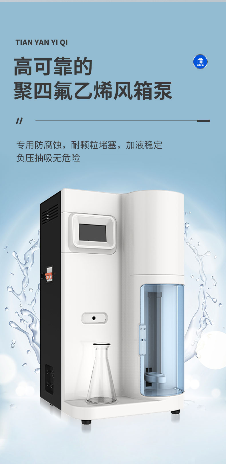 用于檢測(cè)食品、藥品、土壤、化工、農(nóng)業(yè)、林業(yè)、材料、環(huán)境監(jiān)測(cè)等領(lǐng)域氮含量或蛋白質(zhì)含量測(cè)定、陽(yáng)離子交換量測(cè)定。