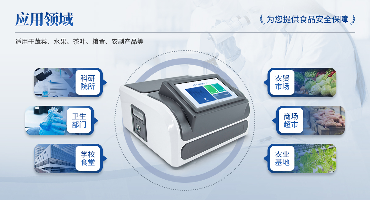全自動農藥殘留檢測儀是依據國家標準方法(GB/T5009.199-2003),采用酶抑制率比色法對水果、蔬菜等農產品中有機磷和氨基甲酸酯類農藥含量進行快速準確的檢測。該設備廣泛應用于蔬菜批發(fā)市場、超市、商場、食藥監(jiān)等部門的蔬菜和水果中的農藥殘留檢測。