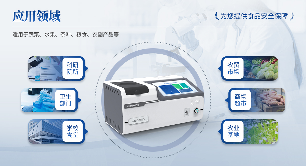 全自動(dòng)農(nóng)藥殘留檢測儀是依據(jù)國家標(biāo)準(zhǔn)方法(GB/T5009.199-2003),采用酶抑制率比色法對水果、蔬菜等農(nóng)產(chǎn)品中有機(jī)磷和氨基甲酸酯類農(nóng)藥含量進(jìn)行快速準(zhǔn)確的檢測。該設(shè)備廣泛應(yīng)用于蔬菜批發(fā)市場、超市、商場、食藥監(jiān)等部門的蔬菜和水果中的農(nóng)藥殘留檢測。