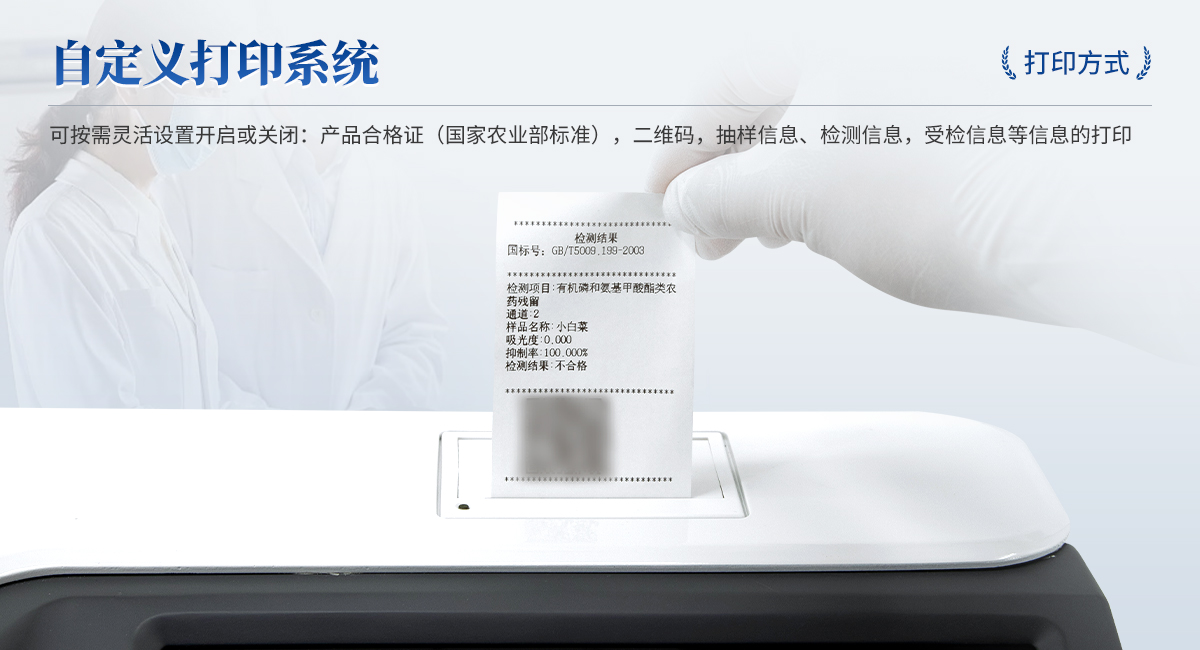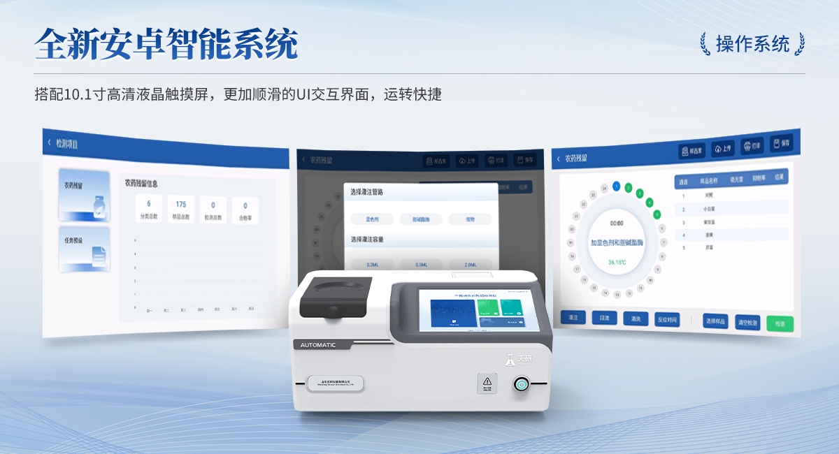 | 1. 試劑位置:3個(gè) | 2. 檢測形式:旋轉(zhuǎn)24通道比色盤,可任意選擇檢測通道,自動(dòng)對應(yīng)選擇通道。 | 3. 系統(tǒng)配置:10.1寸高清液晶觸摸屏,采用ARM Cortex?-A7,RK3288/4核處理器,運(yùn)行內(nèi)存1GB。Android7.1.1 系統(tǒng)分辨率1280×800。 | 4.恒溫系統(tǒng):具有自動(dòng)加溫溫控系統(tǒng),精準(zhǔn)恒溫37℃,精度±0.1℃。 | 5.添加系統(tǒng):儀器按照試劑要求自動(dòng)、按時(shí)、按量加入試劑,并且自動(dòng)對未正常放置的樣本或異常的樣本進(jìn)行檢查并提示。 | 6.清洗功能:儀器具備回流及自動(dòng)清洗管路功能,避免試劑污染。 | 7.混勻功能:設(shè)備具備自動(dòng)混勻功能。 | 8.光源校準(zhǔn):設(shè)備可自動(dòng)校準(zhǔn),確保檢測準(zhǔn)確度。 | 9.實(shí)時(shí)監(jiān)控:儀器測試過程中屏幕顯示運(yùn)行狀態(tài),可實(shí)時(shí)查看。 | 10.數(shù)據(jù)存儲(chǔ):內(nèi)部存儲(chǔ)16GB,可存儲(chǔ)500萬條數(shù)據(jù)。 | 11.樣品多選功能:設(shè)備具備樣品一鍵多選功能,選擇樣品自動(dòng)匹配檢測通道。 | 12.項(xiàng)目預(yù)設(shè):可提前設(shè)置單個(gè)及多個(gè)相同或不相同的檢測任務(wù),可單次或者多次調(diào)取,減少檢測時(shí)間。 | 13.自定義打印系統(tǒng):內(nèi)置自定義打印系統(tǒng),可按需靈活設(shè)置開啟或關(guān)閉:產(chǎn)品合格證(國家農(nóng)業(yè)部標(biāo)準(zhǔn)),二維碼,抽樣信息、檢測信息,受檢信息等信息的打印。 | 14.A4版本報(bào)告打印功能:設(shè)備可自動(dòng)生成A4版報(bào)告,A4報(bào)告帶二維碼,可掃描二維碼生成電子版,并可識(shí)別真?zhèn)巍?/td> | 15.傳輸方式:儀器配備無線通信模塊: 4G(APN)通訊模塊、Wifi模塊,藍(lán)牙傳輸模塊,同時(shí)具有USB接口以及RJ45接口能以多種方式實(shí)現(xiàn)數(shù)據(jù)保存和數(shù)據(jù)傳輸功能,設(shè)備數(shù)據(jù)可以同步上傳至平臺(tái)。 | 16.數(shù)據(jù)監(jiān)管系統(tǒng):設(shè)備自帶監(jiān)管平臺(tái),并可同步對接監(jiān)管平臺(tái),數(shù)據(jù)可局域網(wǎng)和互聯(lián)網(wǎng)數(shù)據(jù)上傳,檢測結(jié)果可直接傳至食品安全監(jiān)管平臺(tái)。達(dá)到食品安全問題預(yù)估、預(yù)警。 | 17.系統(tǒng)遠(yuǎn)程更新功能:無需設(shè)備返廠,即可遠(yuǎn)程實(shí)時(shí)升級全新系統(tǒng),節(jié)省時(shí)間成本及避免運(yùn)輸造成設(shè)備損。 |