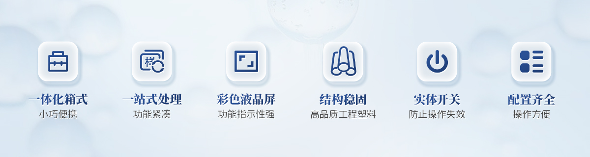 | 1、功能緊湊,集成五種樣品前處理常用的功能,完成樣品一站式處理。 | 2、結(jié)構(gòu)穩(wěn)固,機(jī)箱采用***工程塑料,具備**的抗沖擊性、耐腐蝕性、便攜性。 | 3、操作穩(wěn)定,機(jī)器采用五寸全彩色液晶屏,功能指示性強(qiáng),用戶操作均為實(shí)體開關(guān),杜絕佩戴手套和液體噴濺時(shí)的操作失效。 |