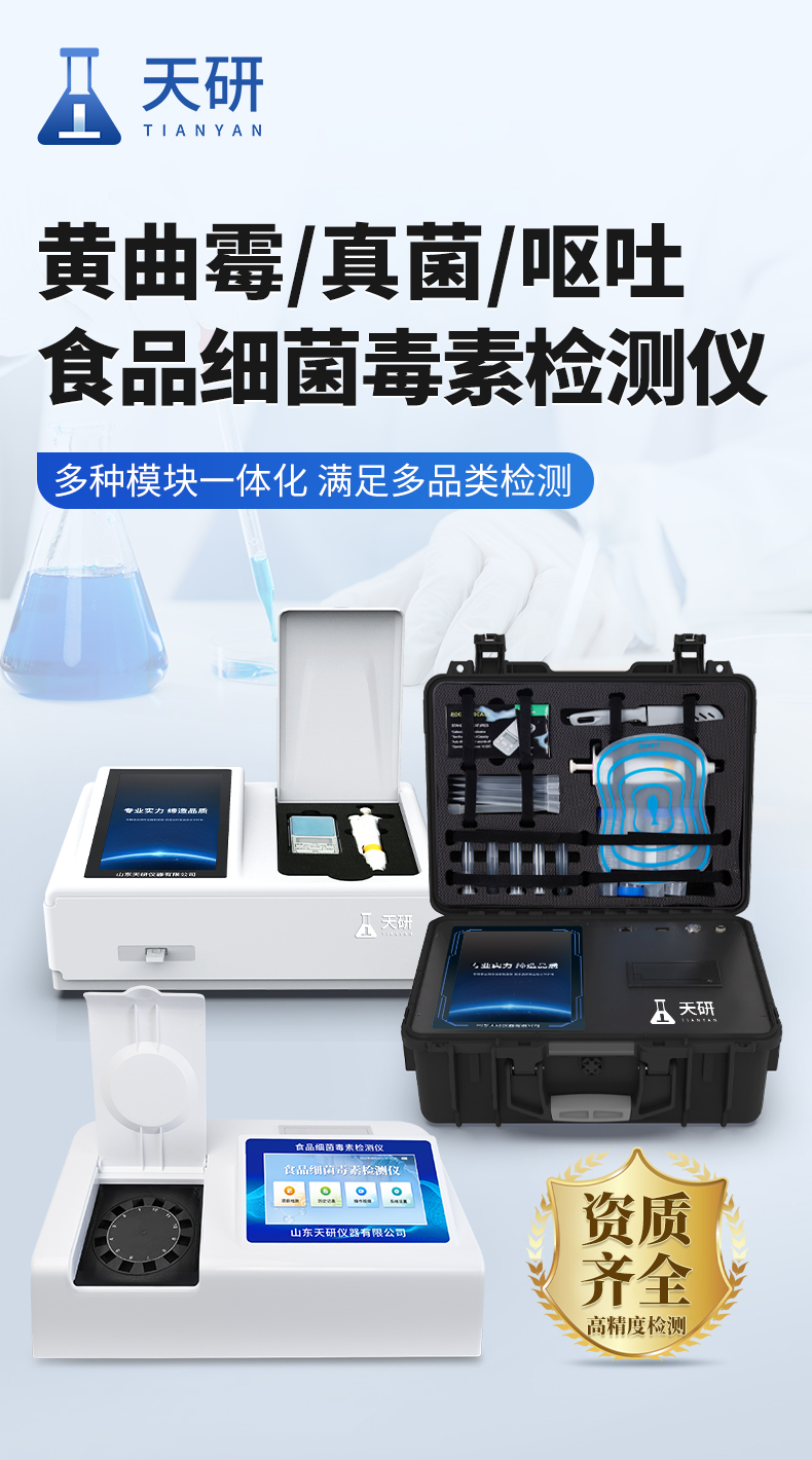 山東天研儀器有限公司生產(chǎn)的真菌毒素檢測(cè)儀應(yīng)用競(jìng)爭(zhēng)抑制免疫層析的技術(shù)原理,通過(guò)就是通過(guò)待檢測(cè)物與抗體結(jié)合的方法,分析待檢樣品中真菌毒素殘留??煽焖贆z測(cè)糧食、飼料、谷物、食用油、調(diào)味品中如玉米、大米、小麥、大麥、糙米、麩皮、稻谷、豆粕、米糠、飼料中的黃曲霉毒素B1、M1、總量,玉米赤霉烯酮、嘔吐毒素、T2毒素、赭曲霉毒素、伏馬毒素等