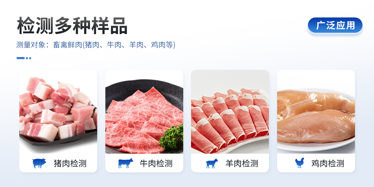 技術(shù)參數(shù): 1、測(cè)量對(duì)象:畜禽鮮肉(豬肉、牛肉、羊肉、雞肉等); 2、測(cè)量范圍:65~85%; 3、采樣時(shí)間:一次采樣時(shí)間< 2s; 4、測(cè)量誤差:在70~78%范圍內(nèi)≤1.0%;