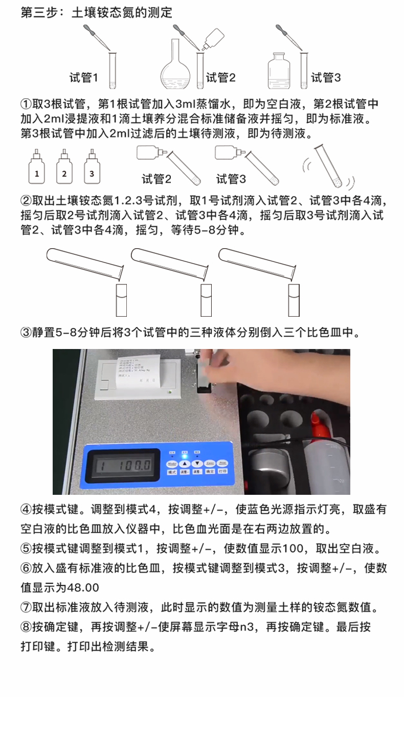 | 全國《機(jī)箱/藥劑一體式鋁合金機(jī)箱》設(shè)計(jì),便于攜帶、堅(jiān)固耐用,配套成品藥劑。 | 微電腦控制,數(shù)字化線路、程序化設(shè)計(jì),液晶顯示,交直流兩用,測(cè)試數(shù)據(jù)可存儲(chǔ)查詢,可野外流動(dòng)測(cè)試,最大程度降低操作者的失誤和勞動(dòng)強(qiáng)度。 | 分辨率:0.001,觸摸式按鍵,內(nèi)置新一代熱敏打印機(jī),可打印測(cè)試結(jié)果。 | 肥料養(yǎng)分專用快速檢測(cè)儀可檢測(cè)化肥、有機(jī)肥中的速效氮、速效磷、有效鉀、全氮、全磷、全鉀、有機(jī)質(zhì)含量等。 | 采用高亮度 LED 燈作為光源, 硅半導(dǎo)體作為信號(hào)接收系統(tǒng), 壽命長達(dá)10萬小時(shí)級(jí)別。光源穩(wěn)定,一致性好。 | 比色槽部分采用單通道、雙光路設(shè)計(jì),無機(jī)械位移及磨損,光路測(cè)試定位**,保證測(cè)定結(jié)果精度。 | 采用自主發(fā)明分析方法,保證檢測(cè)結(jié)果絕對(duì)達(dá)到國標(biāo)要求。 | 肥料打印結(jié)果為百分含量,測(cè)試誤差小于1%。 |