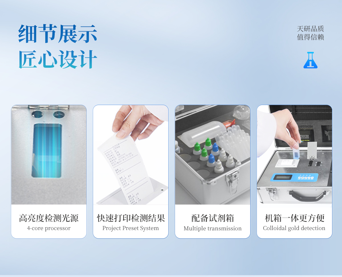 | 功能全:測(cè)試項(xiàng)目國(guó)內(nèi)外全面(各類藥劑均可選購(gòu))。 | 配套齊全,該儀器集藥、器、儀為一體,攜帶方便,相當(dāng)于一個(gè)小型實(shí)驗(yàn)室,用戶只需提供蒸餾水即可在要求時(shí)間內(nèi)完成全部操作。適于農(nóng)業(yè)服務(wù)部門或農(nóng)資經(jīng)銷商鑒別肥料真假、肥料廠商肥料生產(chǎn)中控、農(nóng)資質(zhì)檢部門進(jìn)行農(nóng)資打假,規(guī)范農(nóng)資市場(chǎng)。 | 性能可靠:工作穩(wěn)定性優(yōu)于國(guó)家標(biāo)準(zhǔn)JJG179-90指標(biāo)的10倍以上,重復(fù)性達(dá)到光柵型分光光度計(jì)指標(biāo)水平。 |