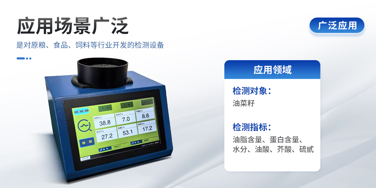近紅外油菜籽檢測(cè)儀,是針對(duì)原糧、食品、飼料等行業(yè)開(kāi)發(fā)的專用 檢測(cè)設(shè)備,可無(wú)損、快速、準(zhǔn)確地檢測(cè)樣本的水分、脂肪、蛋白質(zhì)等多種指標(biāo)。