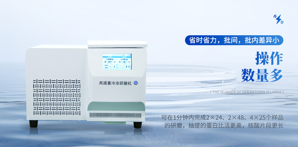 產(chǎn)品介紹:高通量冷凍組織研磨機采用了特殊的垂直 上下震動模 式,通過研磨珠(氧化鋯、鋼珠、玻璃珠、陶瓷珠)的高頻往復振動、撞擊、剪切??焖俚膶崿F(xiàn)目的。使研磨的樣品具有更加充分、更均勻、樣品重復性更好、樣品之間沒有交叉污染。產(chǎn)品特點:1、操作數(shù)量多: **快速的工作可以在1分鐘內(nèi)完成2×24、2×48、4×25個樣品