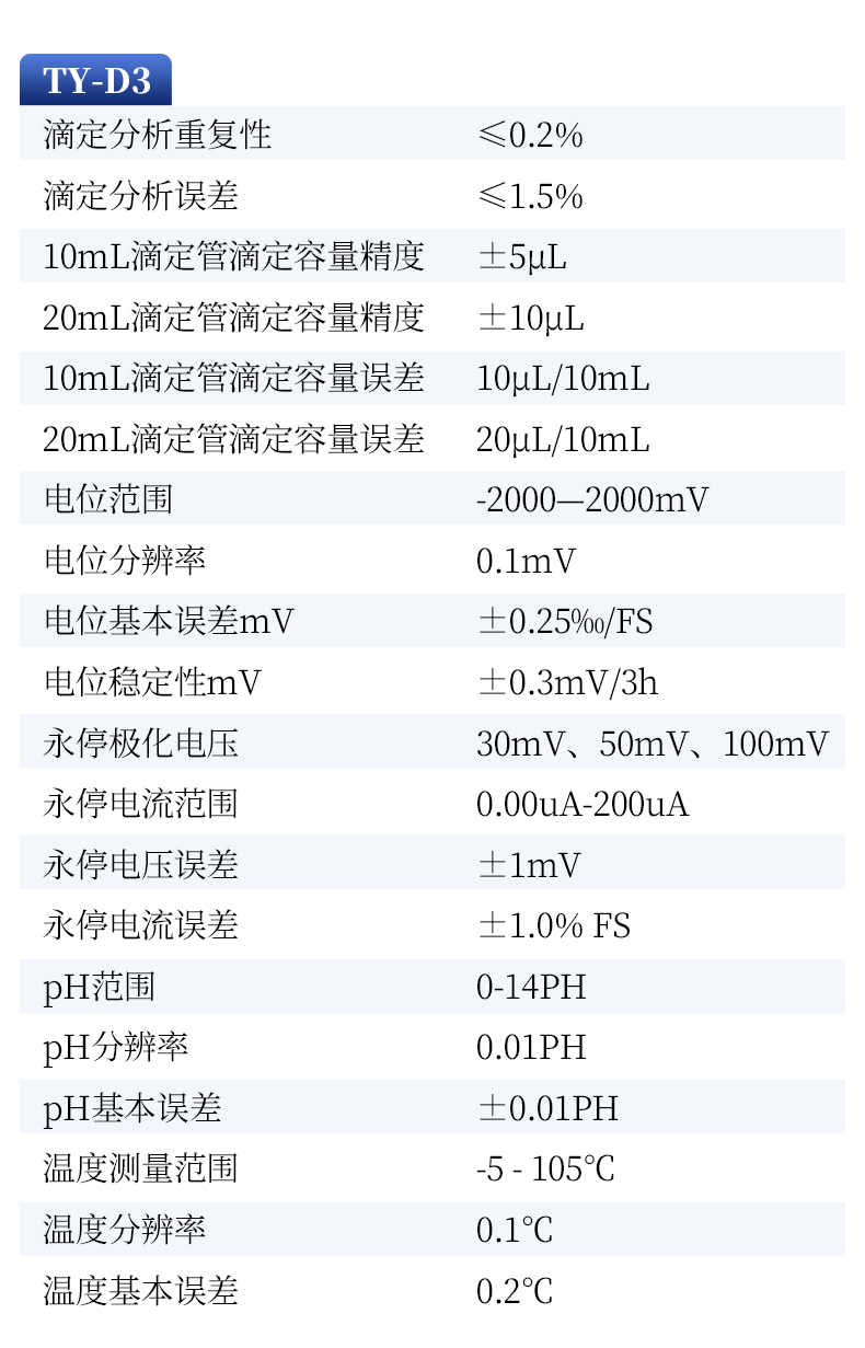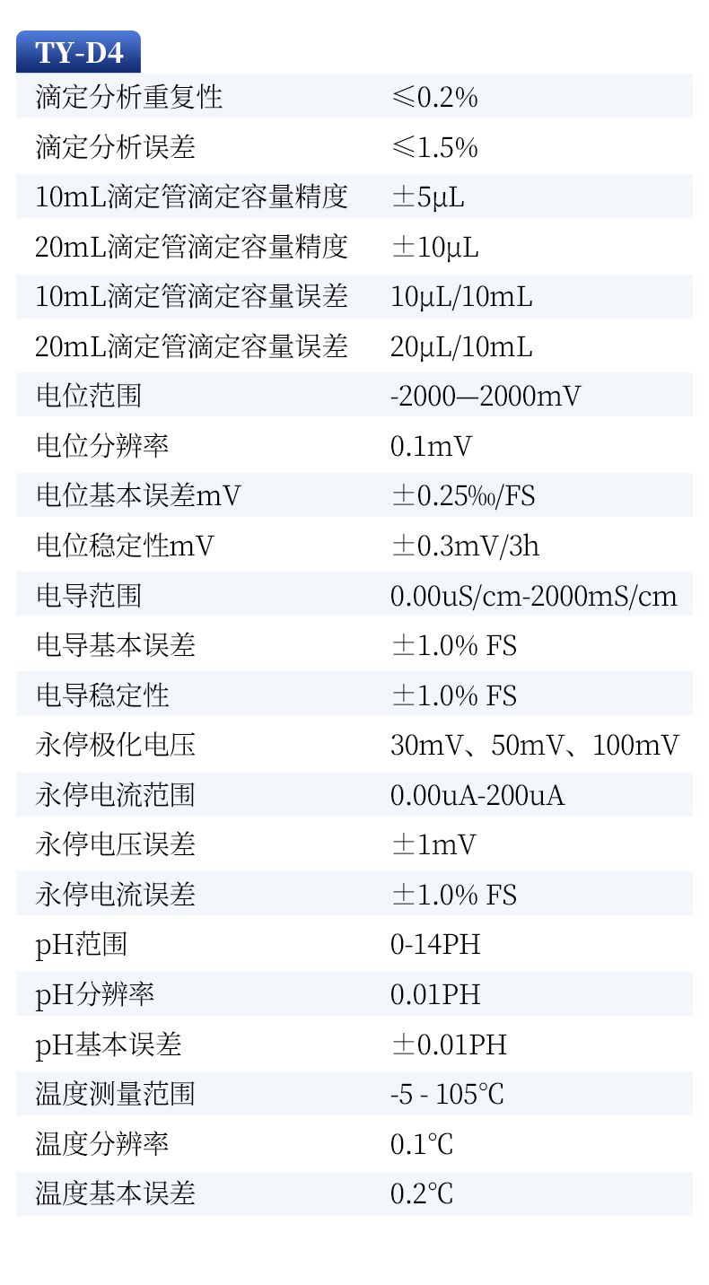| 滴定分析重復性:≤0.2% | 滴定分析誤差:≤1.5% |