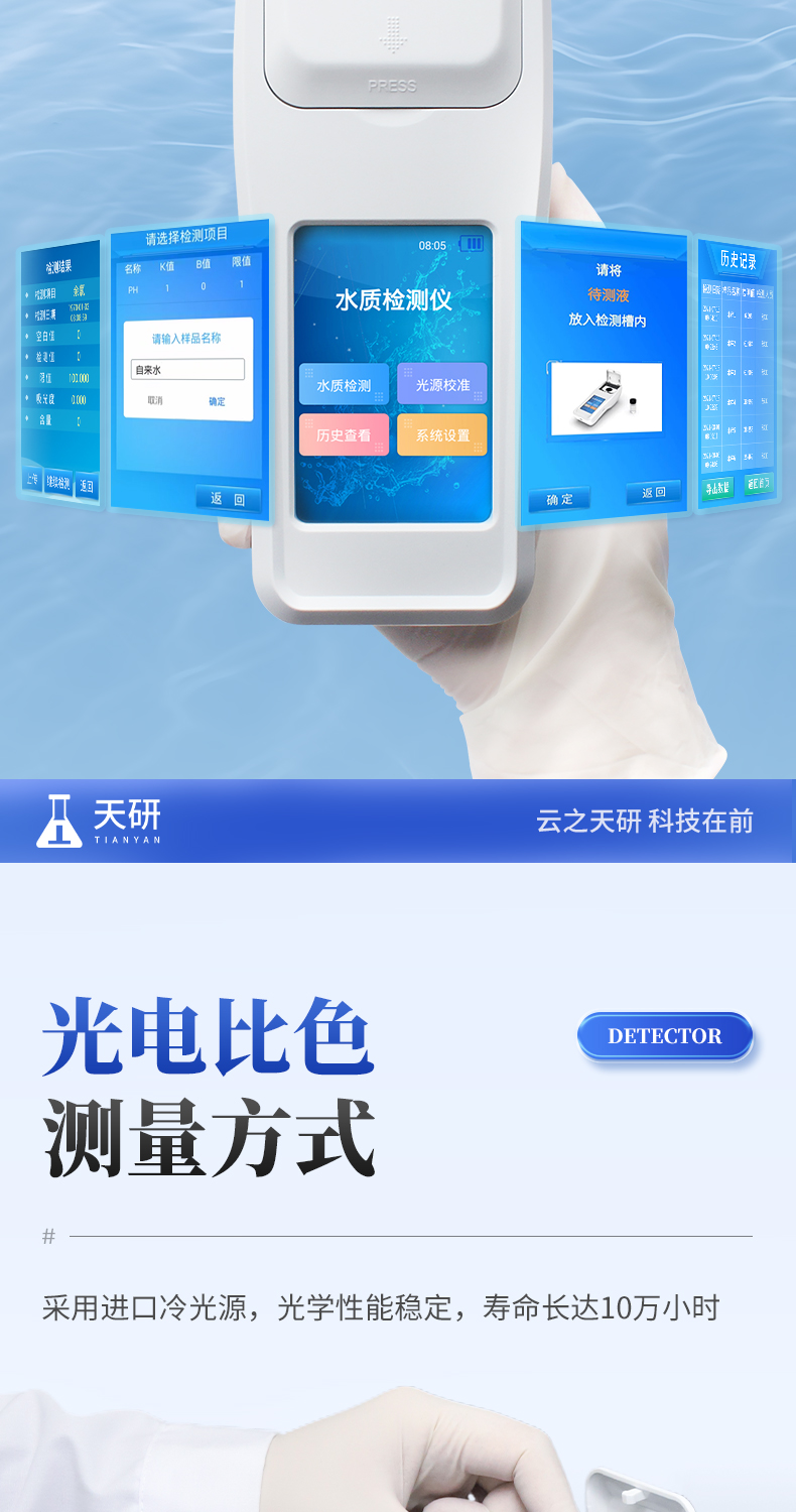 | 1、安卓智能系統(tǒng),操作更佳簡便快捷; | 2、配置云監(jiān)控平臺,檢測結(jié)果可直接無線傳至平臺,進(jìn)行水質(zhì)長短期分析,輔助管理; | 3、內(nèi)置操作流程、操作簡單、無需培訓(xùn)、直接上手; | 4、檢測速度更快,現(xiàn)場讀取數(shù)據(jù); | 5、便攜式體積小,重量輕,方便戶外檢測; | 6、外形小巧美觀,工作穩(wěn)定免維護(hù),具有較好的性價比; | 7、采用進(jìn)口冷光源,光學(xué)性能穩(wěn)定,壽命長達(dá)10萬小時; | 8、交直流兩用,內(nèi)置充電鋰電池,環(huán)保耐用可支持連續(xù)室內(nèi)外工作。 |