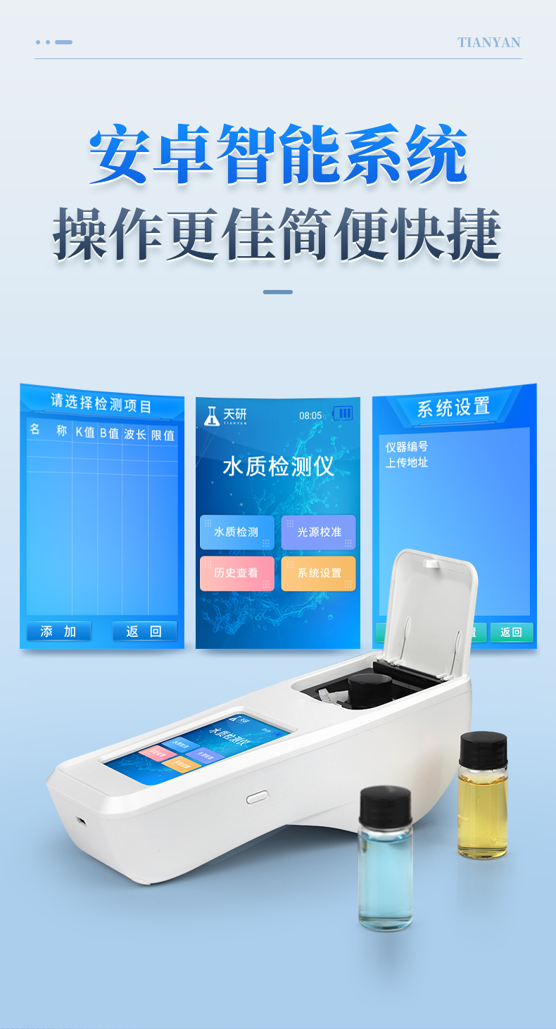 | 1、安卓智能系統(tǒng),操作更佳簡便快捷; | 2、配置云監(jiān)控平臺,檢測結(jié)果可直接無線傳至平臺,進(jìn)行水質(zhì)長短期分析,輔助管理; | 3、內(nèi)置操作流程、操作簡單、無需培訓(xùn)、直接上手; | 4、檢測速度更快,現(xiàn)場讀取數(shù)據(jù); | 5、便攜式體積小,重量輕,方便戶外檢測; | 6、外形小巧美觀,工作穩(wěn)定免維護(hù),具有較好的性價比; | 7、采用進(jìn)口冷光源,光學(xué)性能穩(wěn)定,壽命長達(dá)10萬小時; | 8、交直流兩用,內(nèi)置充電鋰電池,環(huán)保耐用可支持連續(xù)室內(nèi)外工作。 |