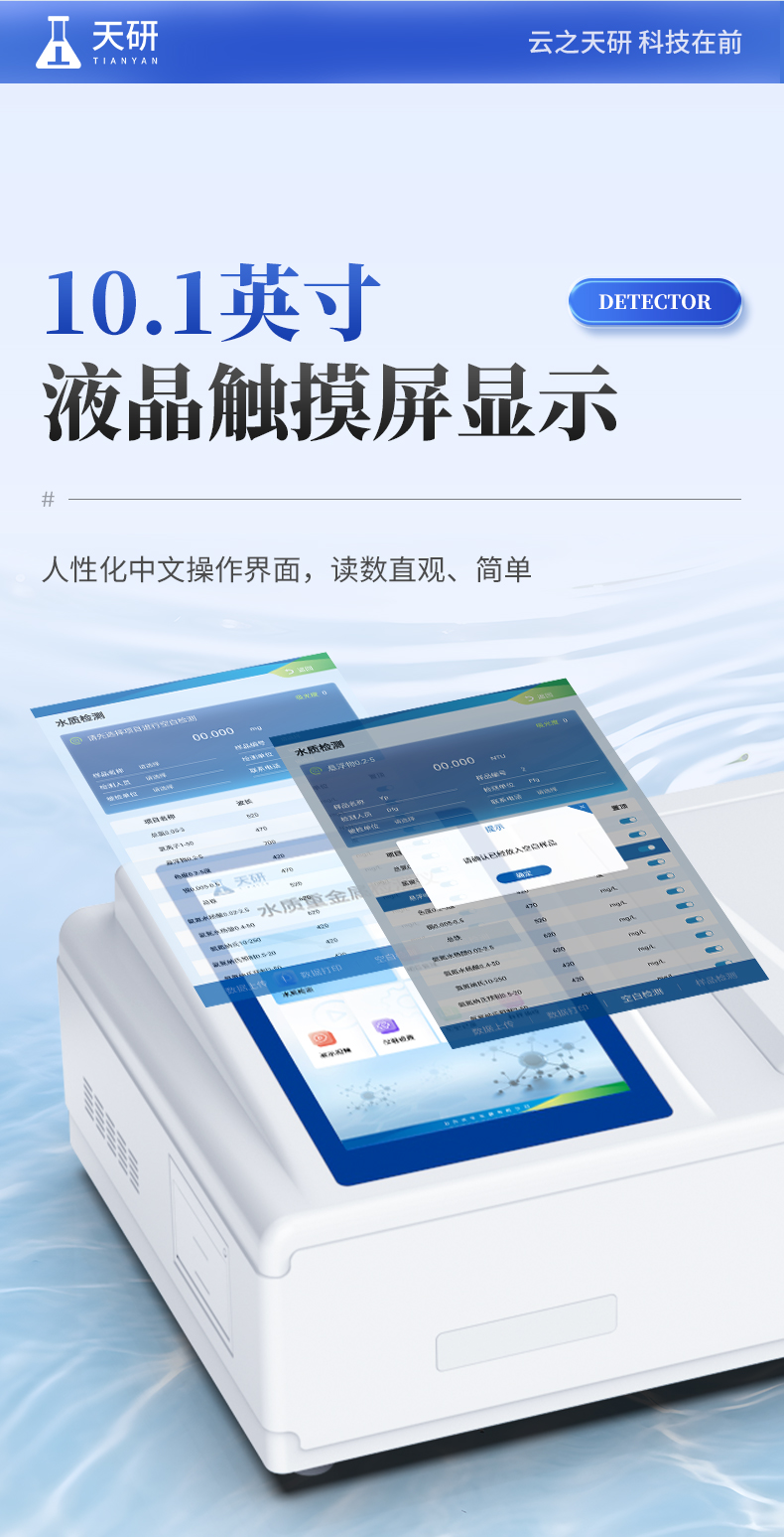| 1、采用全新安卓7.1.1智能操作系統(tǒng),人性化中文操作界面,運(yùn)轉(zhuǎn)速度更快速,穩(wěn)定性更強(qiáng)。 | 2、10.1英寸液晶觸摸屏顯示,人性化中文操作界面,讀數(shù)直觀、簡單。 | 3、采用精密比色池設(shè)計,使用光源一致,可以解決由于光源誤差帶來的檢測結(jié)果誤差問題,檢測結(jié)果更加精準(zhǔn)。 | 4、光源采用進(jìn)口超高亮發(fā)光二極管,光源亮度可以自動調(diào)節(jié)與校準(zhǔn)。 | 5、支持10mm、30mm、50mm皿比色和φ16mm管比色等比色方式,多元選擇,確保測量的準(zhǔn)確性; | 6、具有無線通訊功能,支持WIFI、RJ45、手機(jī)熱點(diǎn)聯(lián)網(wǎng)傳輸,檢測數(shù)據(jù)亦可通過U盤導(dǎo)出; | 7、多功能樣品管理,可對樣品進(jìn)行中英文命名,方便樣品記錄和數(shù)據(jù)存儲; | 8、儀器可永久存儲800萬組數(shù)據(jù),為方便大量數(shù)據(jù)查找,可通過時間檢索,并隨意選擇分析; | 9、支持HDMI輸出,方便用戶培訓(xùn)、講解、及大屏展示。 | 10、儀器帶有監(jiān)管云平臺,數(shù)據(jù)可通過局域網(wǎng)和互聯(lián)網(wǎng)上傳,亦可對接上傳至環(huán)境監(jiān)管部門平臺。 | 11、內(nèi)置熱敏行式打印機(jī),打印紙上的內(nèi)容可自由選擇(包括二維碼打?。?; | 12、交流220V,可選配6ah大容量充電鋰電池,方便戶外流動測試; | 13、內(nèi)置教學(xué)演示視頻,用戶可一邊看儀器內(nèi)操作視頻,一邊進(jìn)行實驗操作,更易上手。 | 14、后期產(chǎn)品固件可升級。 |
