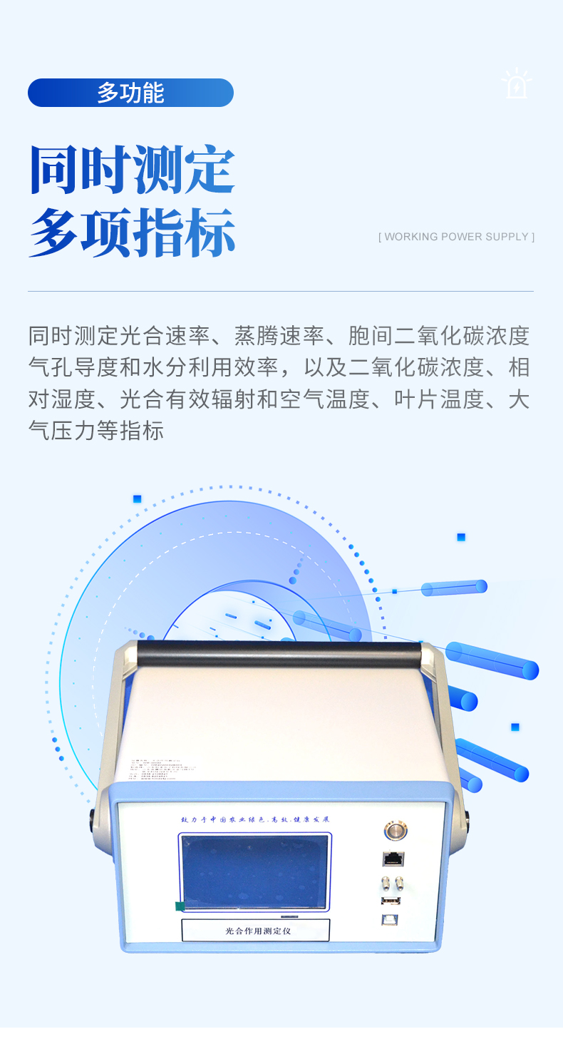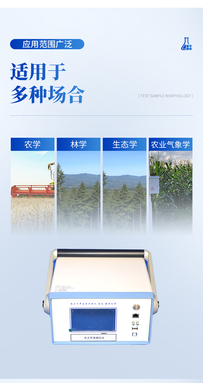 光合作用測定儀采用閉路測量方法可以測定氣體CO2濃度、空氣溫濕度,植物葉片溫度,光強(qiáng),氣體流量等要素,并計算出植物的光合速率、蒸騰速率、細(xì)胞間CO2濃度、氣孔導(dǎo)度、水分利用率等光合作用指標(biāo),在生物、農(nóng)學(xué)、園藝、林業(yè)、昆蟲、微生物、動物等許多專業(yè)的實驗課程中有廣泛的利用前景。