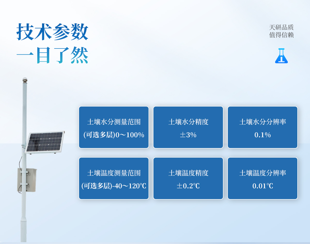 | 監(jiān)測(cè)系統(tǒng)平臺(tái),界面地圖可定位設(shè)備位置,可直觀(guān)的查看和查詢(xún)?cè)O(shè)備**數(shù)據(jù)、歷史數(shù)據(jù)、單位、預(yù)警上限、預(yù)警下限、狀態(tài)等多項(xiàng)內(nèi)容,并且能夠?qū)ι舷?、下限參?shù)進(jìn)行設(shè)置,以及查看報(bào)警記錄等。能夠快速將選定的數(shù)據(jù)列表以EXCLE表格文件的形式導(dǎo)出。平臺(tái)可以同時(shí)綁定多個(gè)監(jiān)測(cè)站設(shè)備。 | 土壤墑情速測(cè)儀采用分層設(shè)點(diǎn)的觀(guān)測(cè)結(jié)構(gòu),地面配置一個(gè)溫度觀(guān)測(cè)點(diǎn),地下土壤每隔10cm配置一個(gè)土壤溫濕測(cè)點(diǎn),觀(guān)測(cè)相對(duì)應(yīng)范圍內(nèi)的土壤溫濕度。 |
