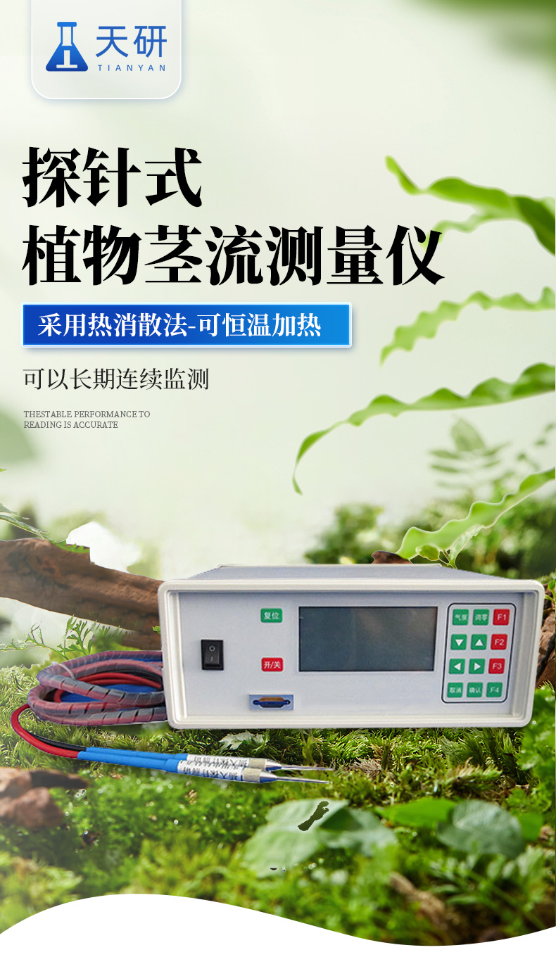 植物莖流測量儀采用熱消散探針法測量樹干瞬時(shí)莖流密度,可以長期連續(xù)觀測樹木的液流,有利于研究樹木和大氣之間的水分交換規(guī)律,并以此為觀測手段,長期監(jiān)測森林生態(tài)系統(tǒng)對(duì)環(huán)境變化的影響。對(duì)于造林綠化、森林管理和林業(yè)管理等具有重要的理論指導(dǎo)意義和應(yīng)用價(jià)值。