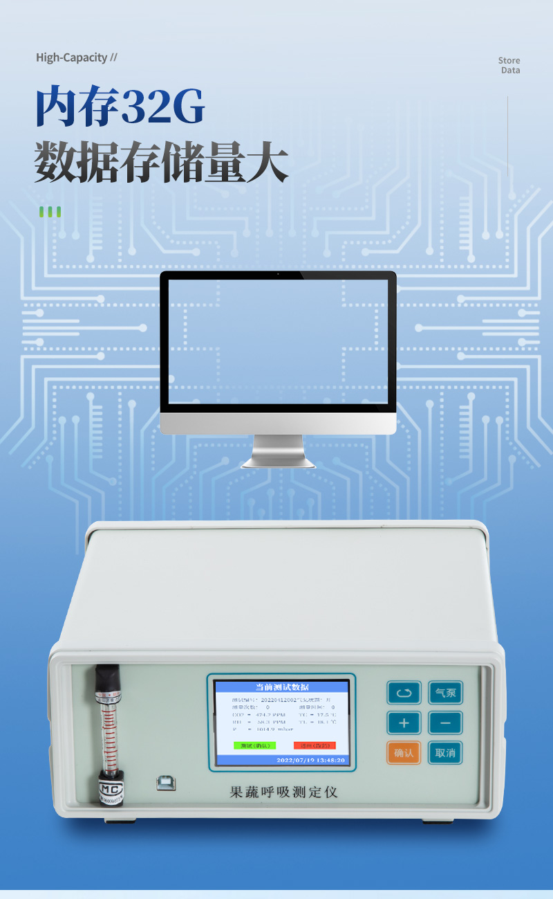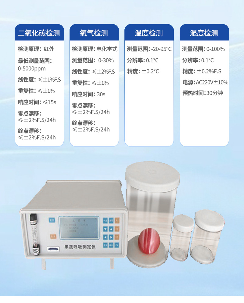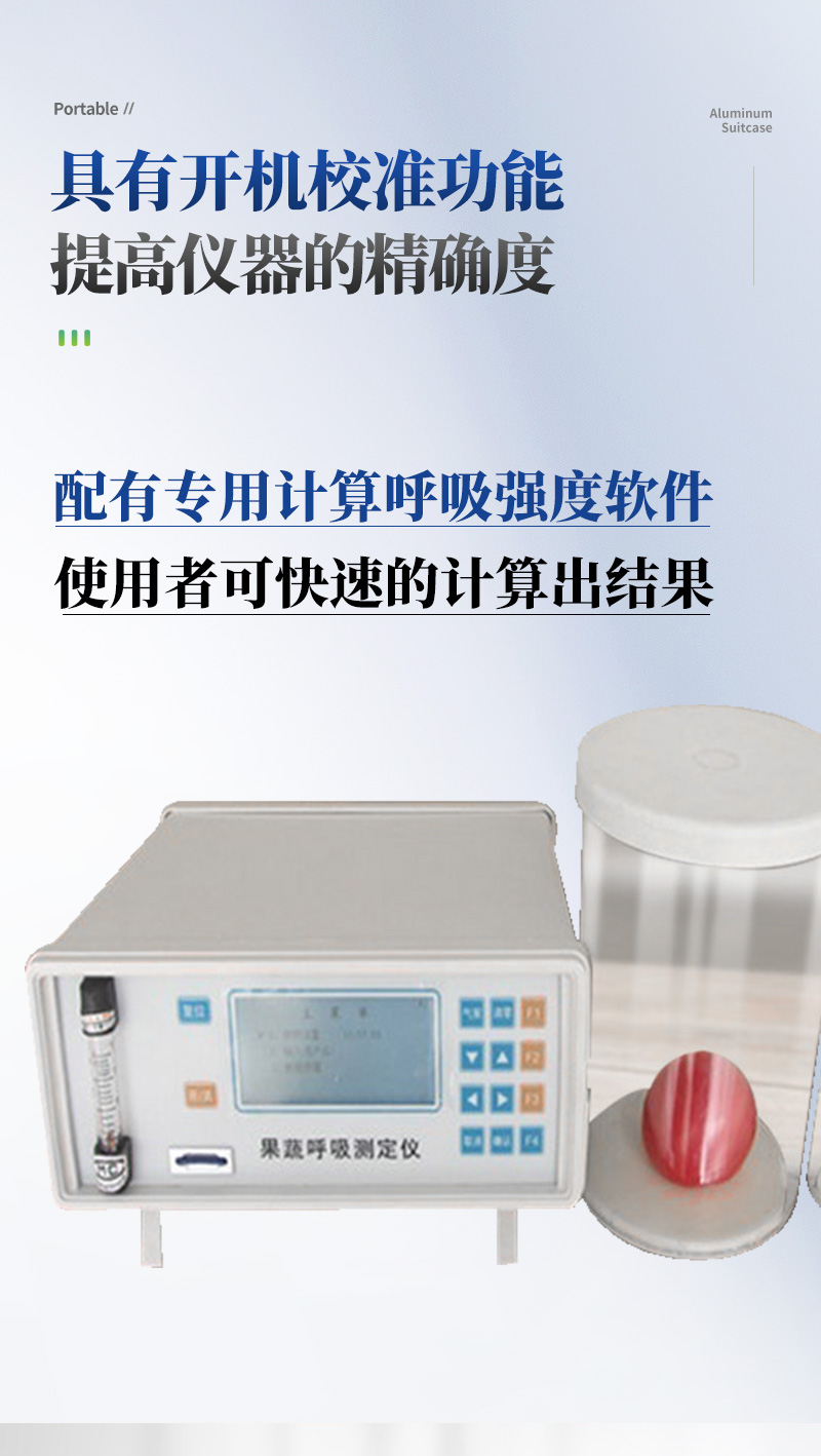 果蔬呼吸測定儀專門用于常溫、冷藏庫、氣調(diào)庫、超市冷柜等儲藏條件下的果品和蔬菜呼吸強度的測定和分析研究。該儀器的特點是可以根據(jù)果蔬的大小來選擇不同體積的呼吸室,加快了平衡和測定時間;可以同時顯示呼吸室的CO2濃度、O2濃度、溫度和濕度。該儀器具有多功能、高精度、快速、**、方便等特點,非常適合于食品,園藝、果品、蔬菜、外貿(mào)等各類學校、科研院所用于各類果品和蔬菜的呼吸測定。