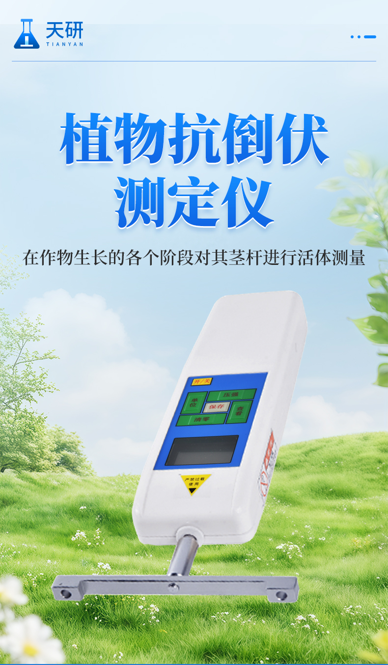 植物抗倒伏測(cè)定儀是決定農(nóng)作物抗倒伏能力的一個(gè)關(guān)鍵因素,玉米、高粱、煙草等作物的倒伏給機(jī)械收割造成很大困難,導(dǎo)致大量浪費(fèi)。同時(shí),作物倒伏還會(huì)造成光照不足,嚴(yán)重影響產(chǎn)量。通過(guò)在作物生長(zhǎng)各階段對(duì)其莖稈進(jìn)行活體測(cè)量,根據(jù)莖稈纖維層抗彎阻力與抗倒伏能力的相關(guān)性進(jìn)行群體數(shù)據(jù)統(tǒng)計(jì)處理,