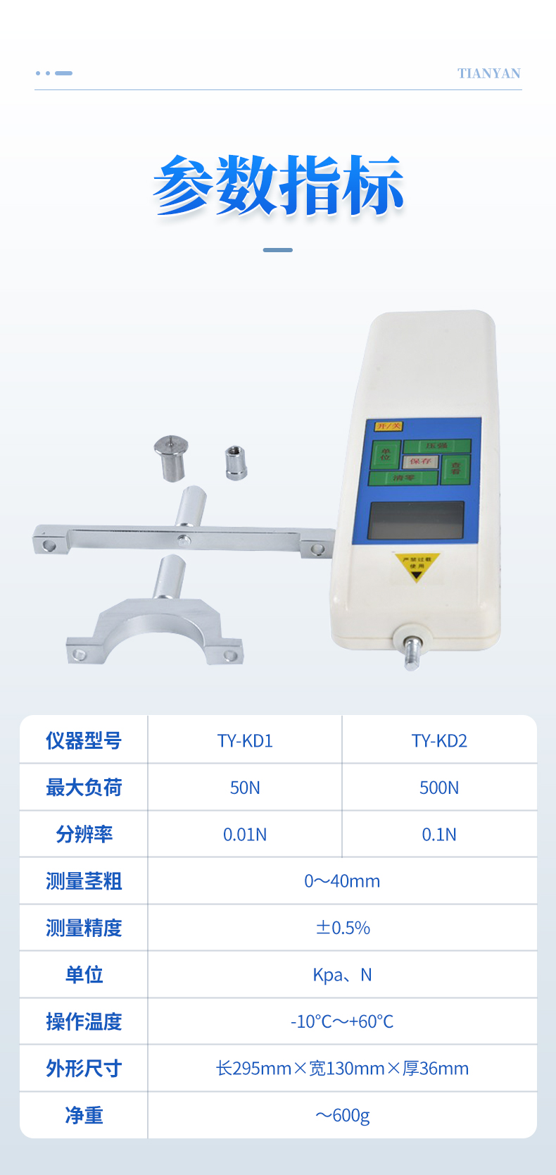 | 3、分辨率:KD1型0.01N;KD2型0.1N。 |