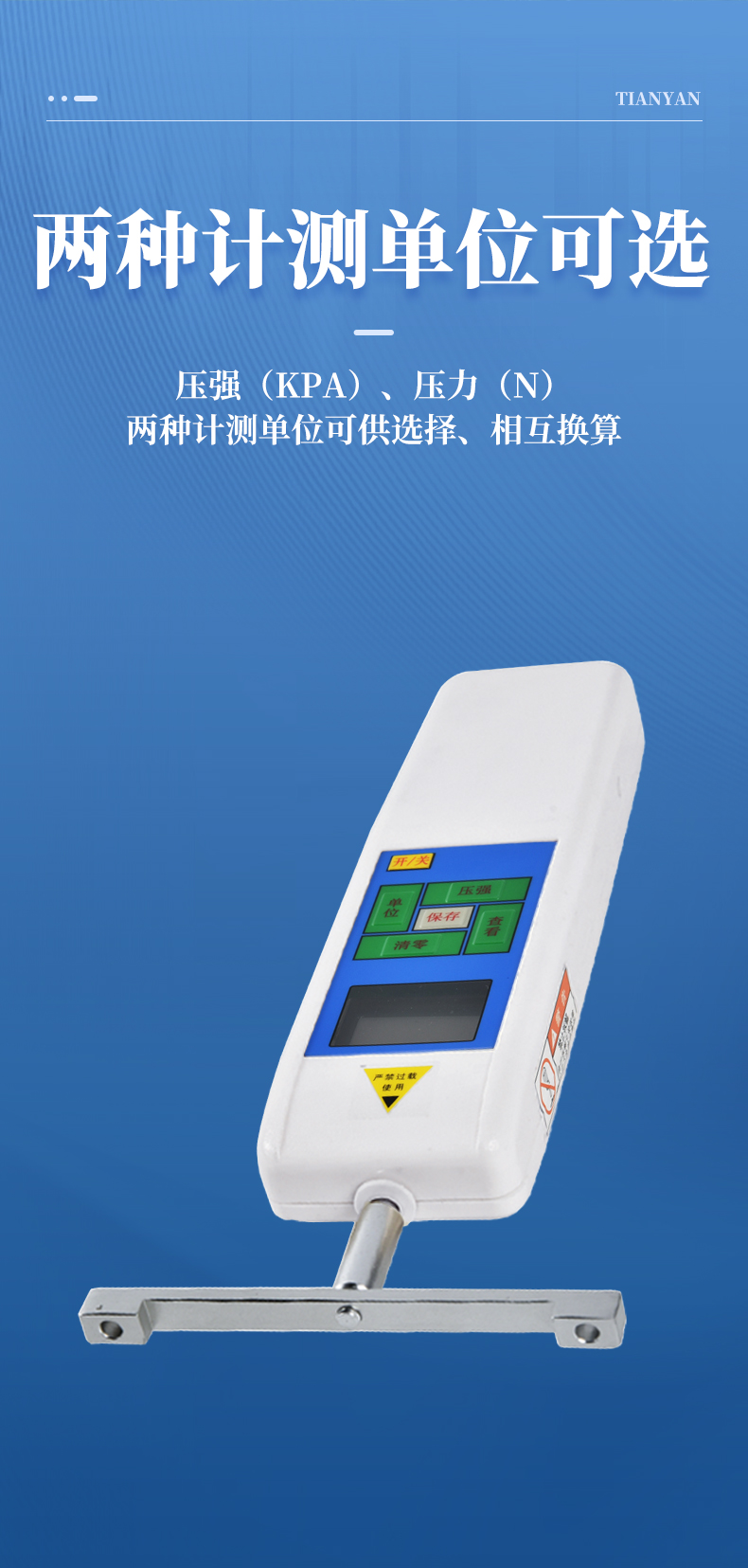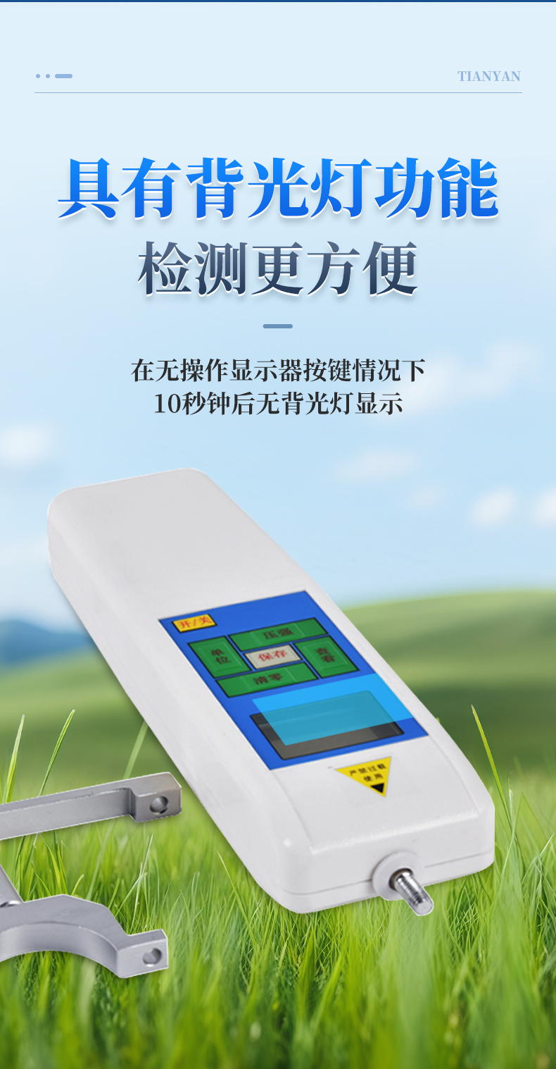| 3、壓強(qiáng)(Kpa)和壓力(N)兩種單位可切換 | 4、背光顯示功能(10秒無(wú)操作自動(dòng)關(guān)閉) |